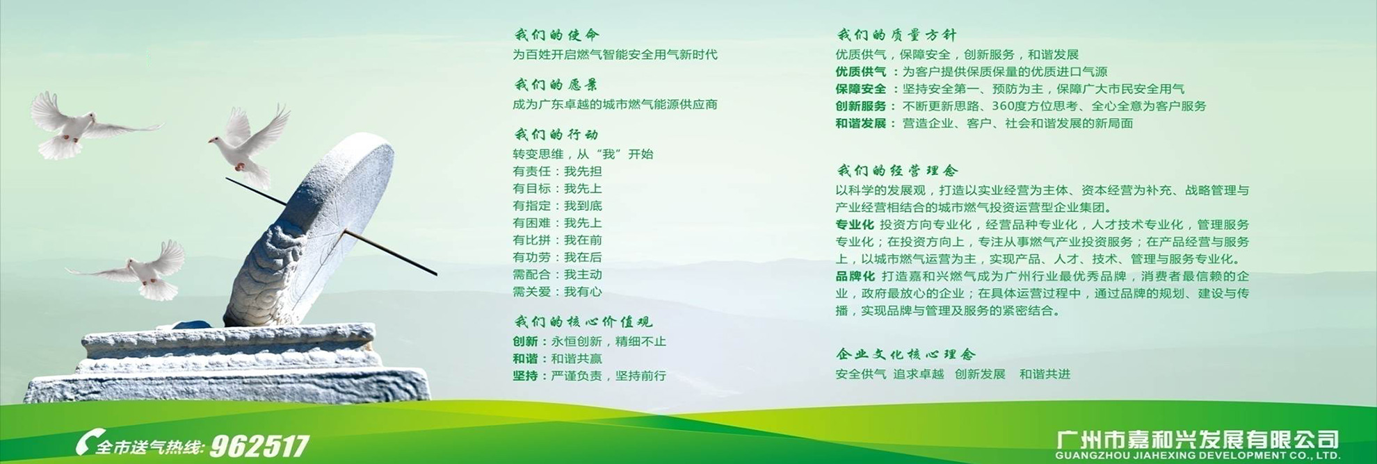公司在廣州經(jīng)營多年的液化氣的過程中,積累了大量的行業(yè)資源,積極配合政府管理及倡導行業(yè)溝通協(xié)調(diào)。現(xiàn)在“嘉和興”已成為廣州液化氣市場的著名品牌。